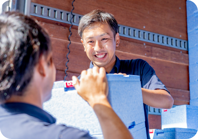 ご注文いただいた食材を担当エリアのお客様へお届けします。
