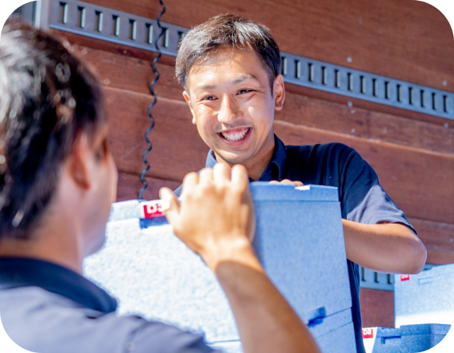 リーダーにフォローしてもらいながら、実際にお客様の前で配送接客を行っていきます。
