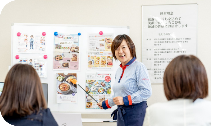 「どうすれば1人前のスマイルスタッフ?」を分かりやすく示したチェックリストです。評価は給与にも反映され、配達商品の増加に応じて、